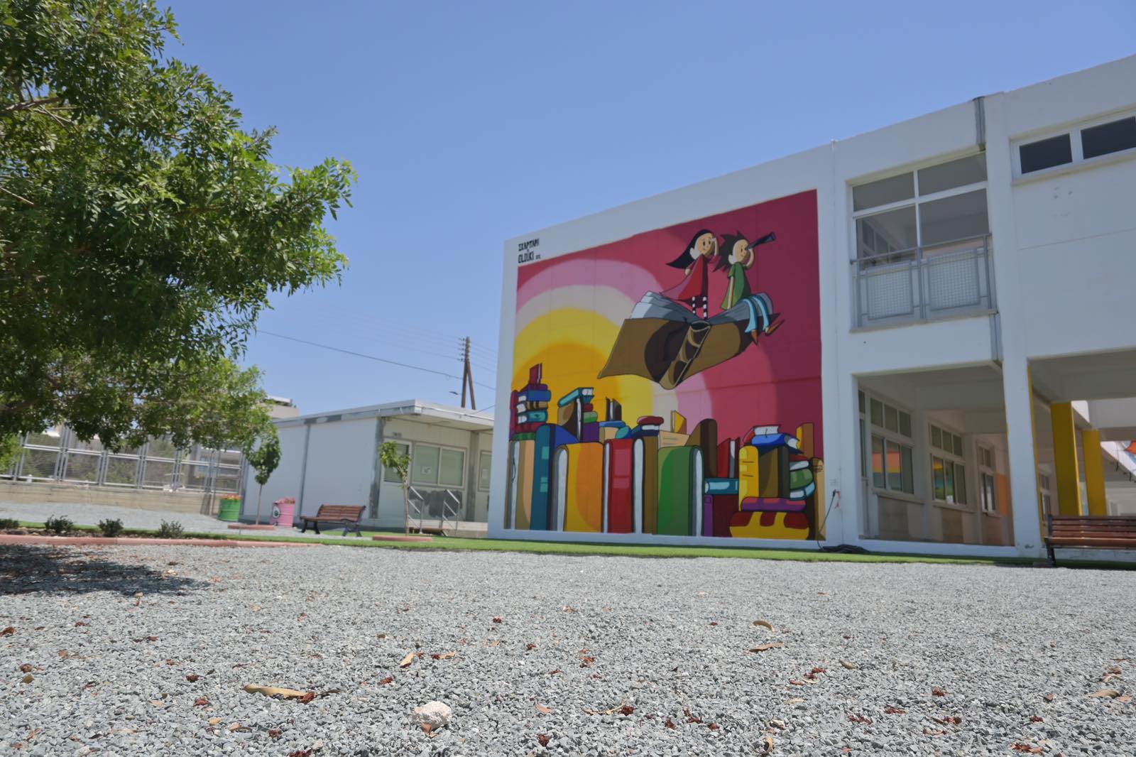 Με αφορμή τη δημιουργία τοιχογραφίας από τους φοιτητές του Τμήματος Καλών Τεχνών του Τεχνολογικού Πανεπιστημίου Κύπρου Γιώργο Λουκαΐδη και Μιχάλη Σκαρπάρη, η Διευθύντρια του Δημοτικού Σχολείου, Μαρία Τσαγκάρη, μας μιλά για το αποτέλεσμα και τις εντυπώσεις από την καλλιτεχνική παρέμβαση στο σχολείο.