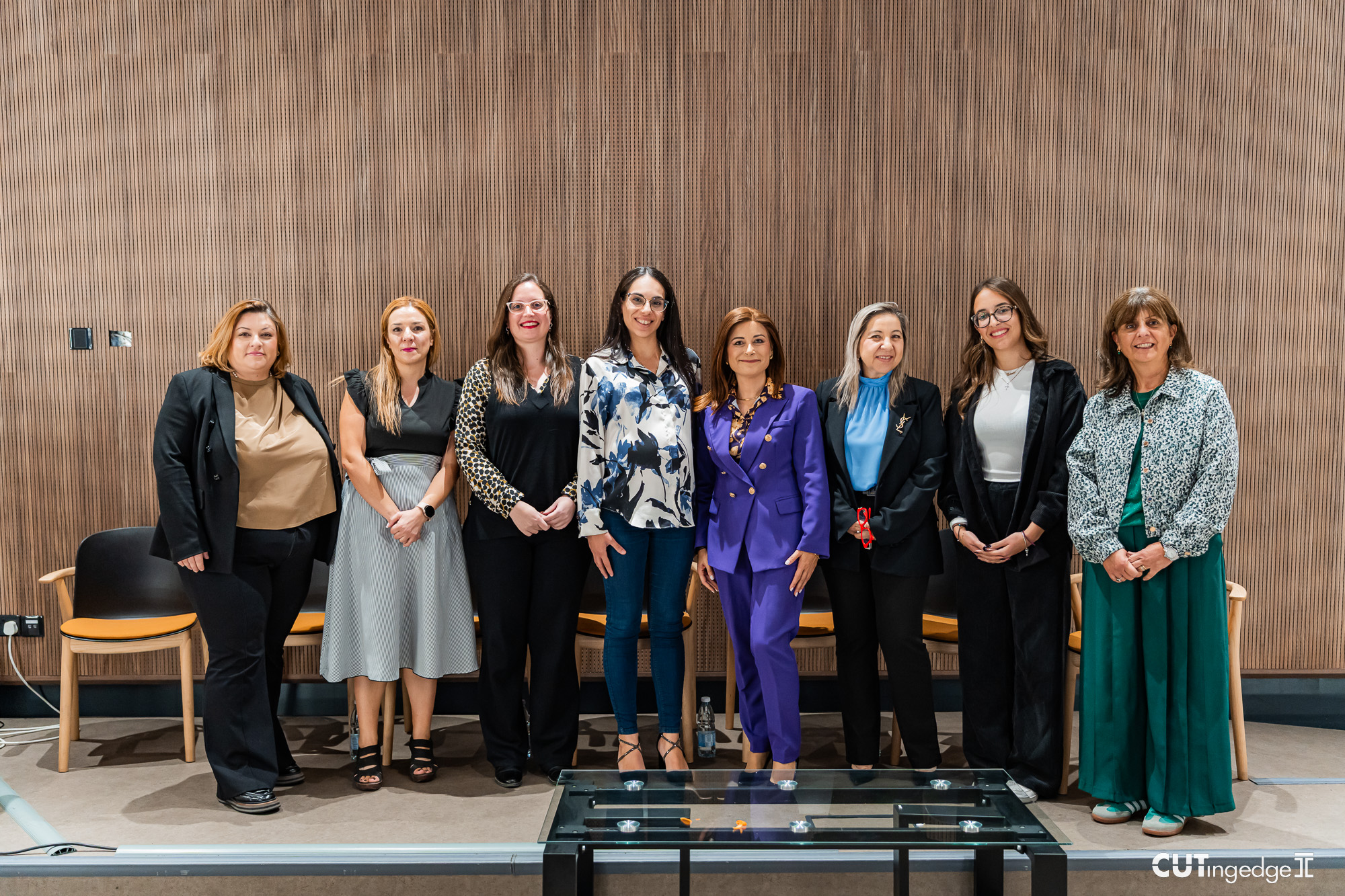 Η κα Ελένη Κουζούπη, Πρόεδρος της Εθνικής Επιτροπής Ισότητας, τοποθετήθηκε για τις δράσεις του κράτους, τις υφιστάμενες νομοθετικές προβλέψεις και τα κενά στην εφαρμογή τους, ενώ αναφέρθηκε στη διαδικασία υιοθέτησης της ευρωπαϊκής οδηγίας για την ποσόστωση 40% γυναικών στα διοικητικά συμβούλια. Η κα Έλενα Ταλιώτου, Δικηγόρος και Πρόεδρος του ΚΟΓΕΕ Πάφου, παρουσίασε τις προκλήσεις και τις ευκαιρίες για τις γυναίκες επιχειρηματίες στην Κύπρο, υπογραμμίζοντας τη σημασία δικτύων υποστήριξης, στοχευμένων εργαλείων και διεθνών καλών πρακτικών. Η Δρ Αργυρώ Τσιπά, Επίκουρη Καθηγήτρια από το Πανεπιστήμιο Κύπρου, συζήτησε τη θέση της γυναίκας στη Μηχανική και το φαινόμενο της «διαρροής ταλέντου», προτείνοντας θεσμικές και οργανωτικές αλλαγές για την παραμονή και ανέλιξη των γυναικών στον ακαδημαϊκό χώρο. Η Δρ Γαβριέλα Ιωάννου Βασιλειάδου, Παιδίατρος από το Γενικό Νοσοκομείο Λάρνακας, αναφέρθηκε στις ανισότητες που παρατηρούνται στην ιατρική, ιδιαίτερα σε ειδικότητες απαιτητικών ωραρίων, και τόνισε την ανάγκη για πολιτικές που ενισχύουν την επαγγελματική και οικογενειακή ισορροπία. Η Καθηγήτρια Μαρία Κραμβιά Καπαρδή, ανέδειξε τους εξωγενείς και ενδογενείς φραγμούς που εμποδίζουν τις γυναίκες στον ακαδημαϊκό χώρο να έχουν φωνή και να σπάσουν τη «γυάλινη οροφή» και εισηγήθηκε πρακτικές που μπορούν να υιοθετηθούν και στην Κύπρο. Τέλος, η κα Ευδοκία Χριστοδούλου, προπτυχιακή φοιτήτρια Μηχανικής από το ΤΕΠΑΚ, μοιράστηκε τις εμπειρίες της ως φοιτήτρια σε ένα ανδροκρατούμενο κλάδο όπως αυτό της Μηχανικής, επισημαίνοντας τους τρόπους με τους οποίους μπορούμε να ενθαρρύνουμε