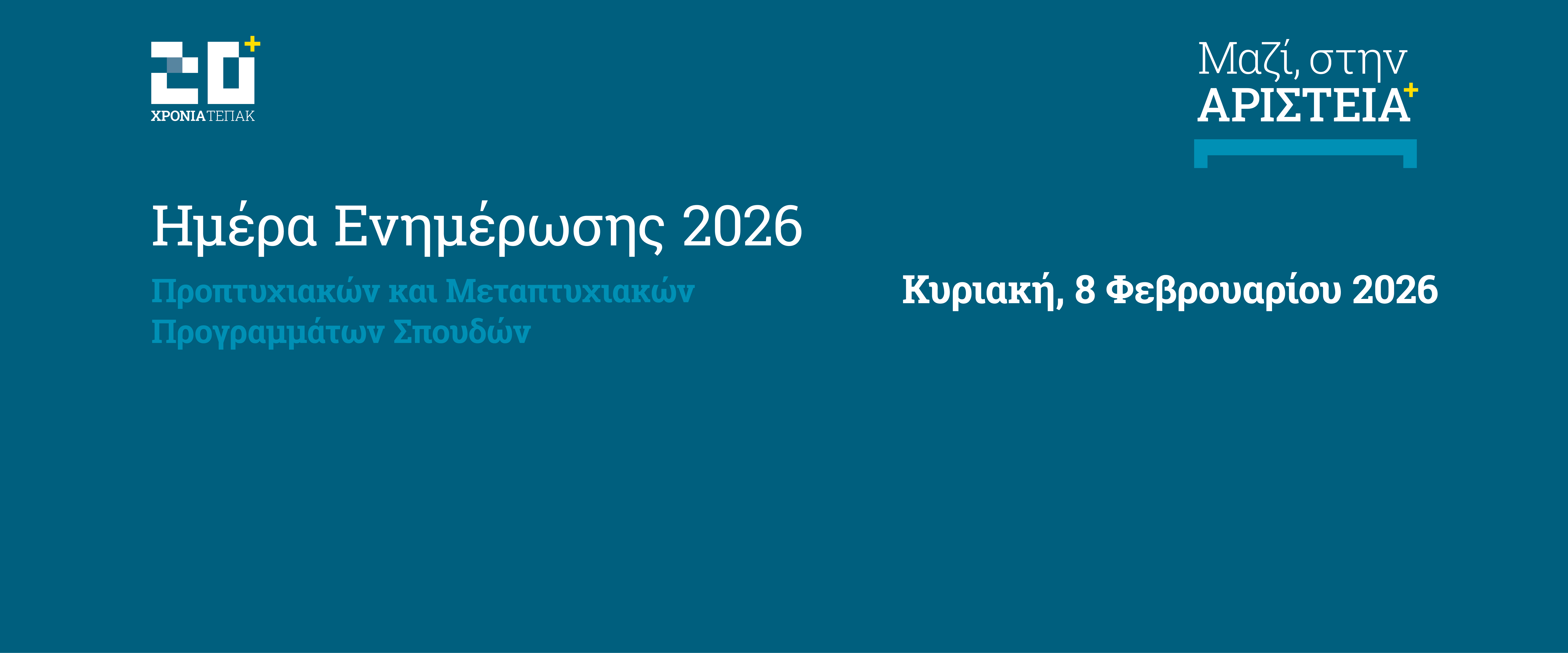 Το Τεχνολογικό Πανεπιστήμιο Κύπρου (ΤΕΠΑΚ), στο πλαίσιο ενημέρωσης των υποψήφιων προπτυχιακών και μεταπτυχιακών φοιτητών/τριών για τα προγράμματα σπουδών και τις παρεχόμενες υπηρεσίες του, διοργανώνει «Ημέρα Ενημέρωσης» στις κτηριακές εγκαταστάσεις του στη Λεμεσό, την Κυριακή 8 Φεβρουαρίου 2026, 10:30 π.μ. - 3:00 μ.μ.
